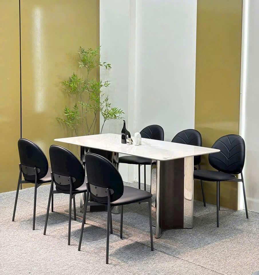 🔹 Chân bàn inox bóng kết hợp sơn tĩnh điện – chắc chắn, đẹp mắt