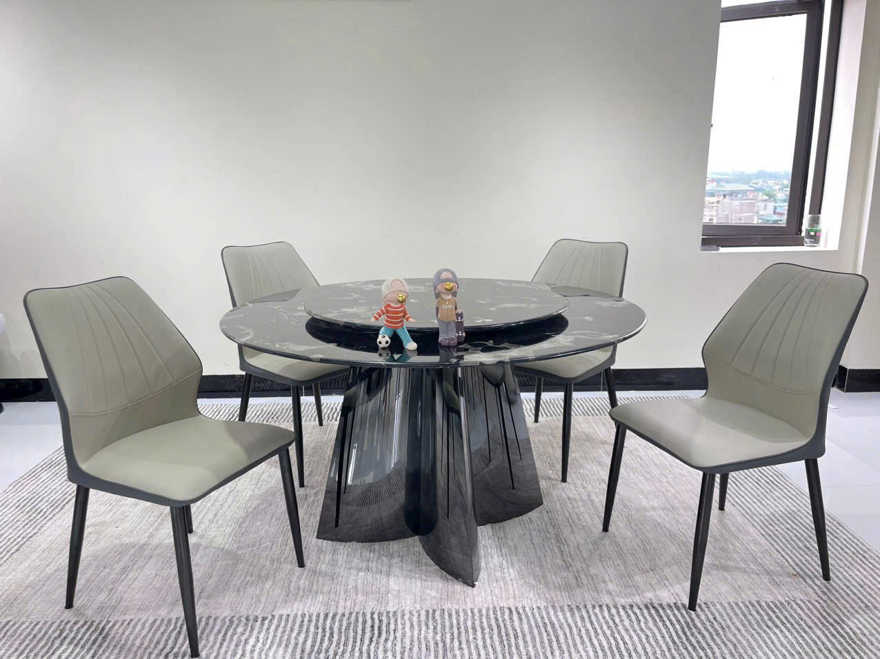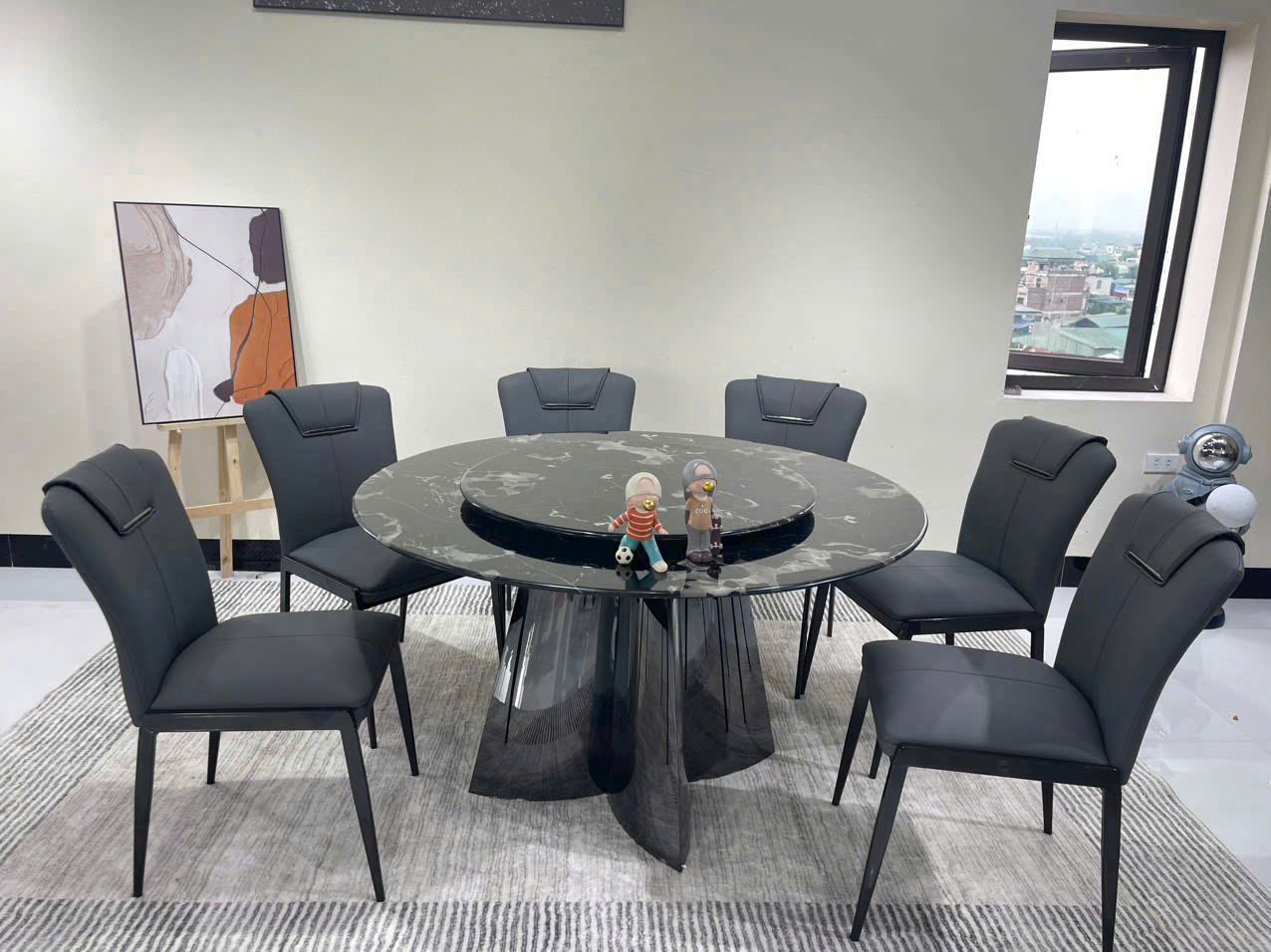 Nâng tầm không gian sống với bộ bàn ăn mặt đá đen tròn xoay 6 ghế bọc da cao cấp, thiết kế tinh tế theo phong cách hiện đại. Mặt đá đen vân mây sang trọng kết hợp mâm xoay tiện lợi, mang lại trải nghiệm dùng bữa tiện nghi và thẩm mỹ.