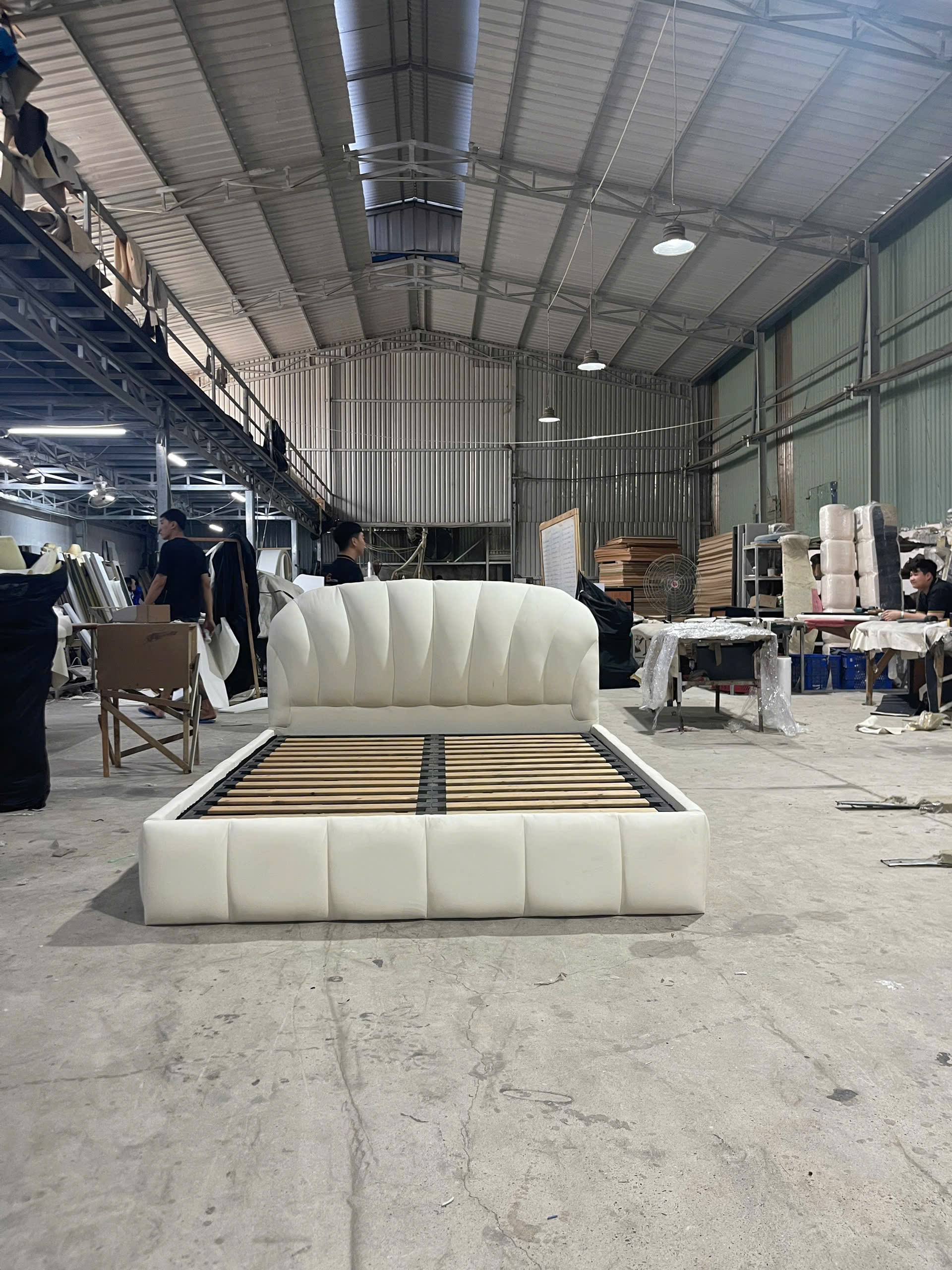 - Khung giường kim loại hoặc gỗ, chắc chắn, chịu lực tốt.
