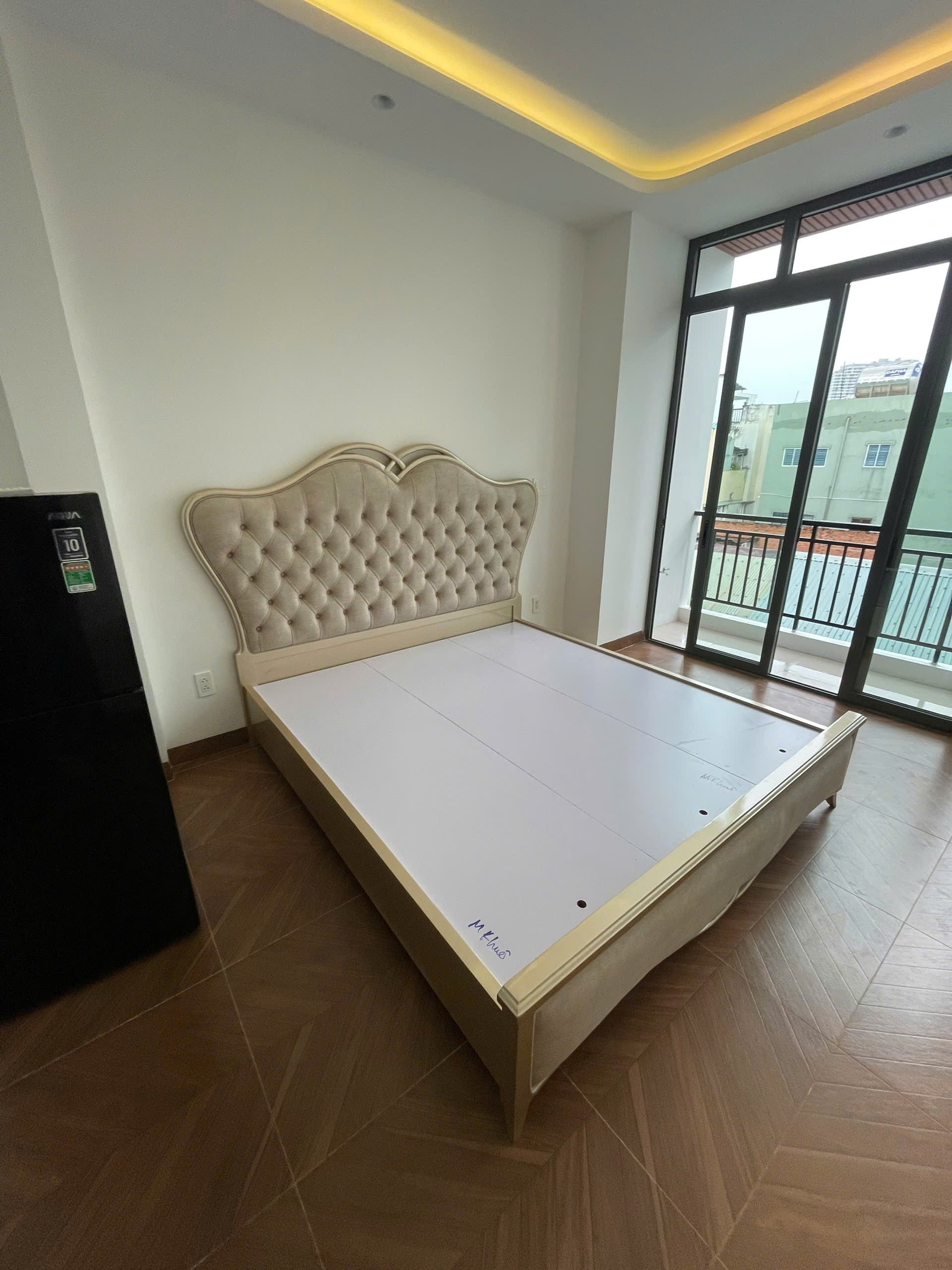 - Khung giường kim loại hoặc gỗ, chắc chắn, chịu lực tốt.