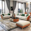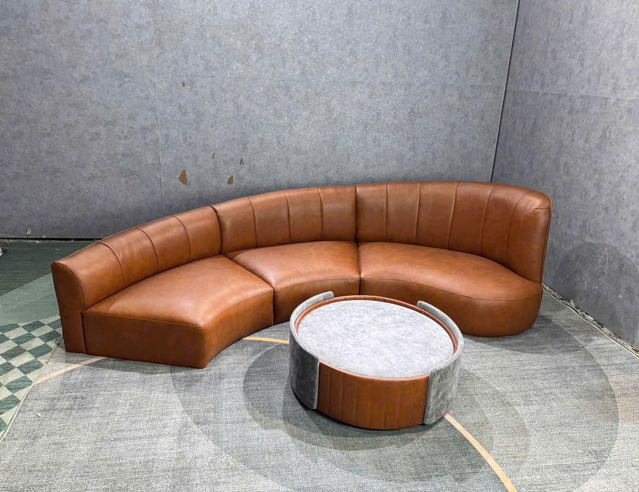 Sofa Da Góc Cong Nâu Da Bò – Thiết Kế Uốn Lượn Tinh Tế, Đẳng Cấp Không Gian