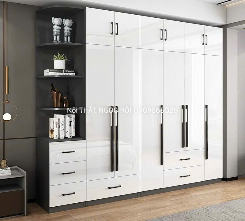 - 6-8 cánh tủ lớn với ray trượt êm ái, dễ dàng mở đóng.