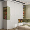 Sản phẩm nổi bật với tông màu trắng thanh lịch, kết hợp tay nắm kim loại vàng đồng sang trọng. Tủ được thiết kế với nhiều cánh trượt kín đáo, cung cấp không gian lưu trữ lớn cho quần áo và đồ dùng cá nhân. Phần kệ mở tích hợp đèn LED ấm áp cho phép bạn trưng bày đồ decor như lọ hoa, sách hoặc túi xách. Khu vực treo đồ với móc tiện lợi và ngăn kéo bên dưới giúp tổ chức đồ dùng một cách gọn gàng.Tích hợp công năng đa dạng