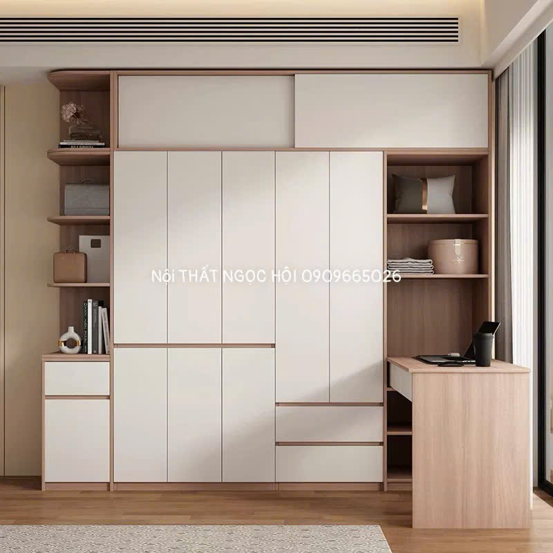 Tủ Quần Áo Kèm Bàn Làm Việc Hiện Đại – Tủ Áo Kịch Trần Thiết Kế Tối Giản