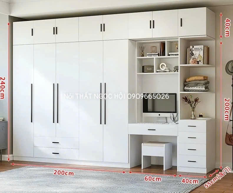 Thiết kế 2 trong 1: Tủ áo + Bàn học/Bàn làm việc
