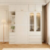 Sản phẩm sử dụng gỗ MDF chống ẩm phủ Melamine cao cấp, đảm bảo độ bền, chống trầy xước và dễ lau chùi. Phụ kiện tủ gồm bản lề giảm chấn, ray trượt êm ái và tay nắm âm tinh tế, tạo tổng thể sang trọng, hiện đại.