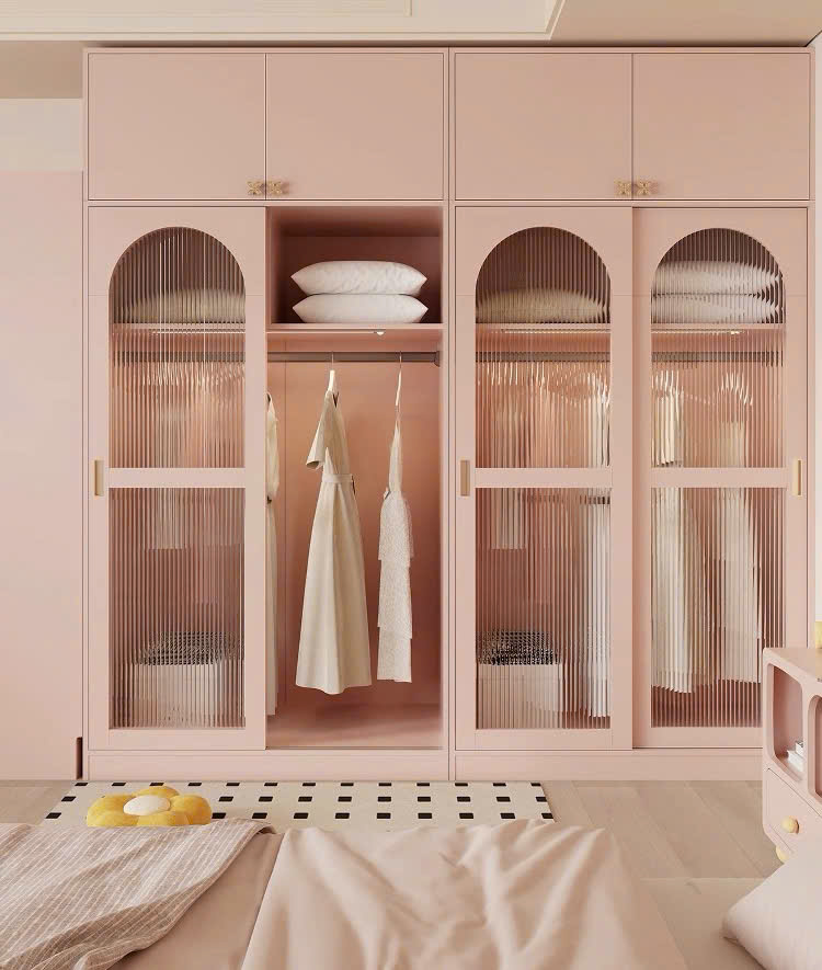 Với sự kết hợp giữa tính thẩm mỹ và công năng, tủ quần áo màu hồng pastel không chỉ là món nội thất lưu trữ quần áo tiện lợi mà còn là điểm nhấn nổi bật giúp không gian phòng ngủ thêm phần tinh tế, cuốn hút và mang đậm dấu ấn cá nhân.