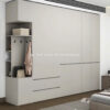 Tủ quần áo liền bàn học và kệ trang trí hiện đại, thiết kế đa năng 3 trong 1. Gỗ MDF chống ẩm phủ Melamine cao cấp, phối trắng – vân gỗ sang trọng, phù hợp phòng ngủ nhỏ và căn hộ chung cư hiện đại.