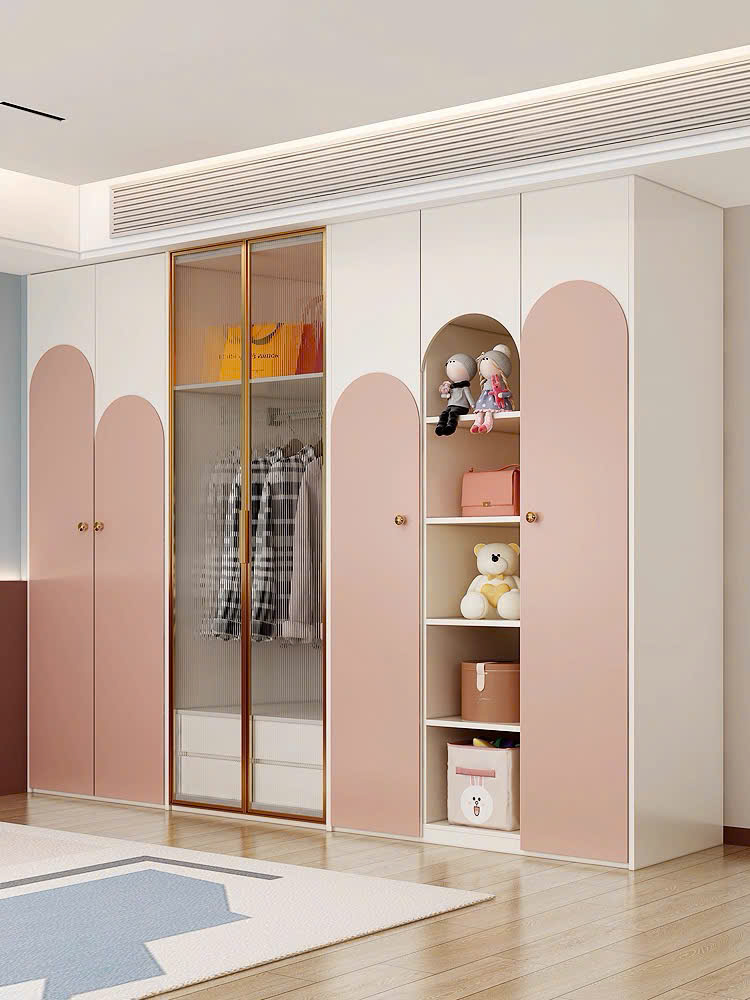 Mẫu tủ quần áo màu hồng pastel kết hợp trắng mang phong cách hiện đại, nhẹ nhàng và dễ thương, lý tưởng cho phòng ngủ của bé gái hoặc các không gian yêu thích sự tinh tế, nữ tính.